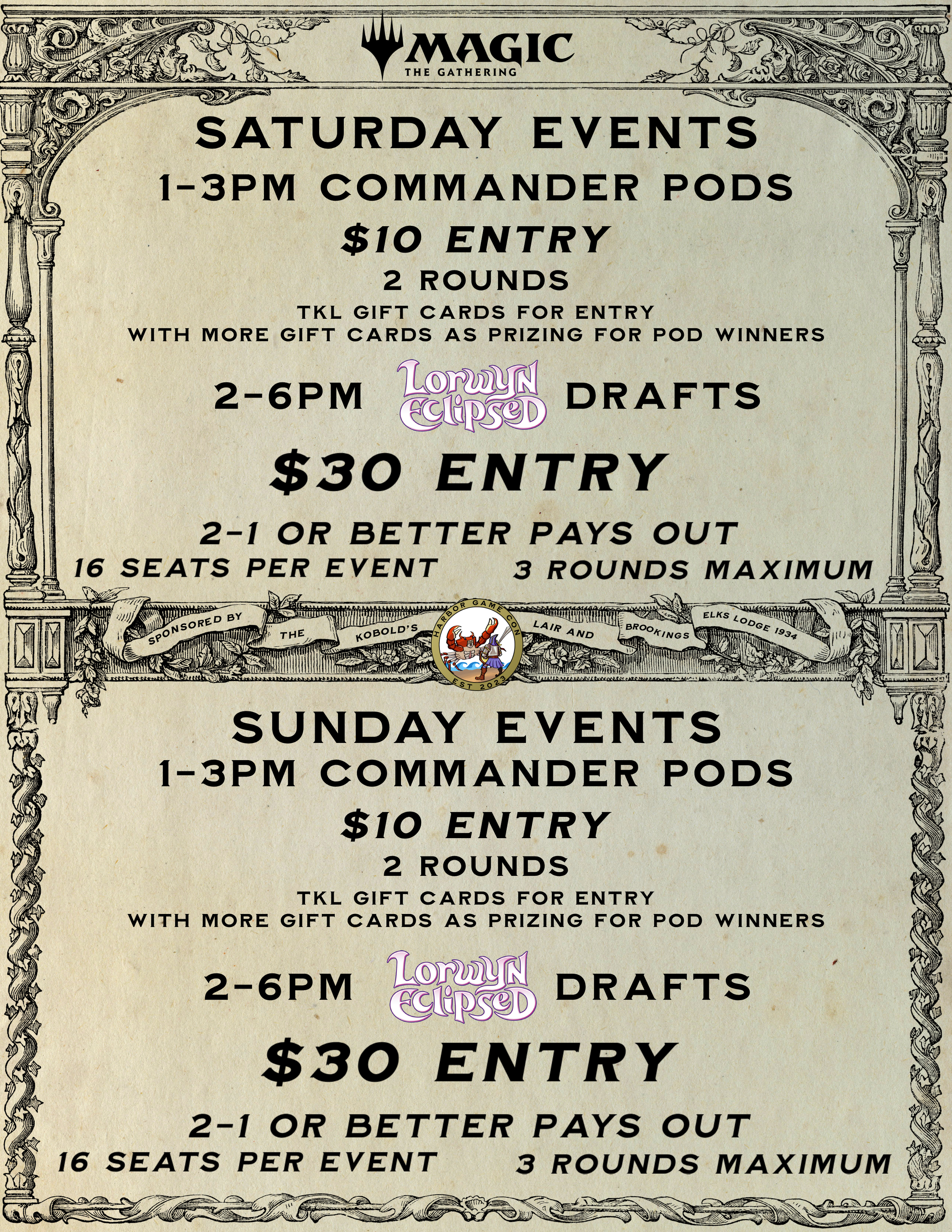 Get ready all you magic fans for a packed day of all you can play magic, We welcome all players from good old 60 card kitchen table players to drafters and the most serious of commander players. New to the game? Or interested in learning? No need to be afraid simply ask and we'll teach you! It's time to sit down shuffle up and sling some spells!